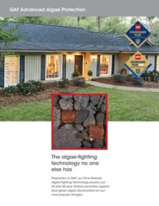 These rich palettes feature revolutionary GAF Time-Release Algae-Fighting Technology to help protect against blue-green algae stains, backed by a 25-year StainGuard Plus™ Algae Protection Limited Warranty.* They’re even eligible for the WindProven™ Limited Wind Warranty‡ with no wind speed limit when installed with four required accessories.